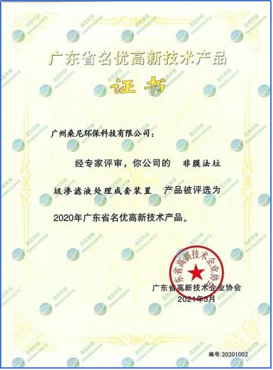 桑尼環(huán)保已申請(qǐng)和通過(guò)發(fā)明專利20余項(xiàng),實(shí)用新型專利10余項(xiàng),高新技術(shù)產(chǎn)品10余項(xiàng),每年堅(jiān)持自主研發(fā)新的專利技術(shù)和產(chǎn)品,不斷創(chuàng)新?!胺悄しɡ鴿B濾液處理成套裝置”評(píng)為廣東省名優(yōu)高新技術(shù)產(chǎn)品。