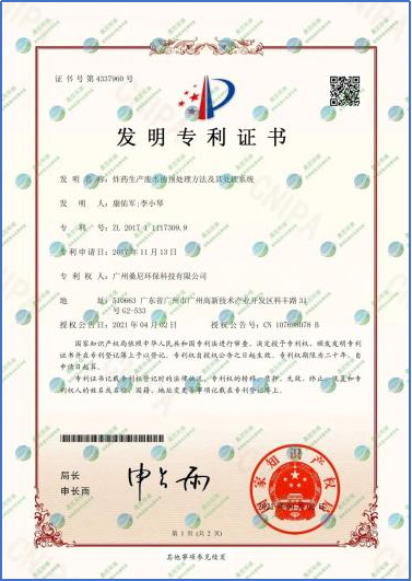 2021年5月再添2項(xiàng)授權(quán)發(fā)明專利--炸藥生產(chǎn)廢水的預(yù)處理方法及其處理系統(tǒng)(專利號(hào):ZL 201711117309.9)、一種鉻泥資源回收及廢渣無(wú)害化處理的方法及系統(tǒng)(專利號(hào):CN201810876172.3)。?